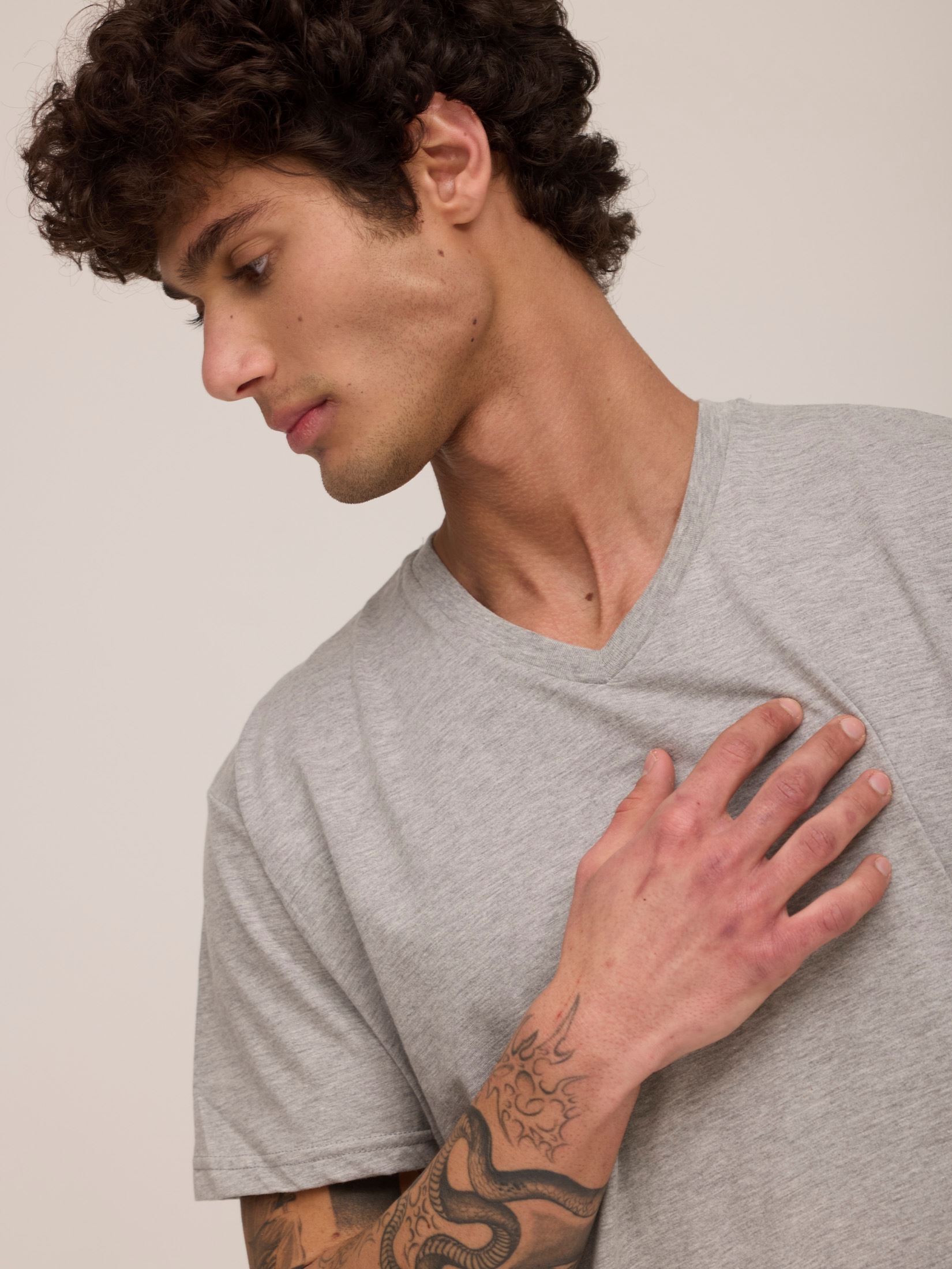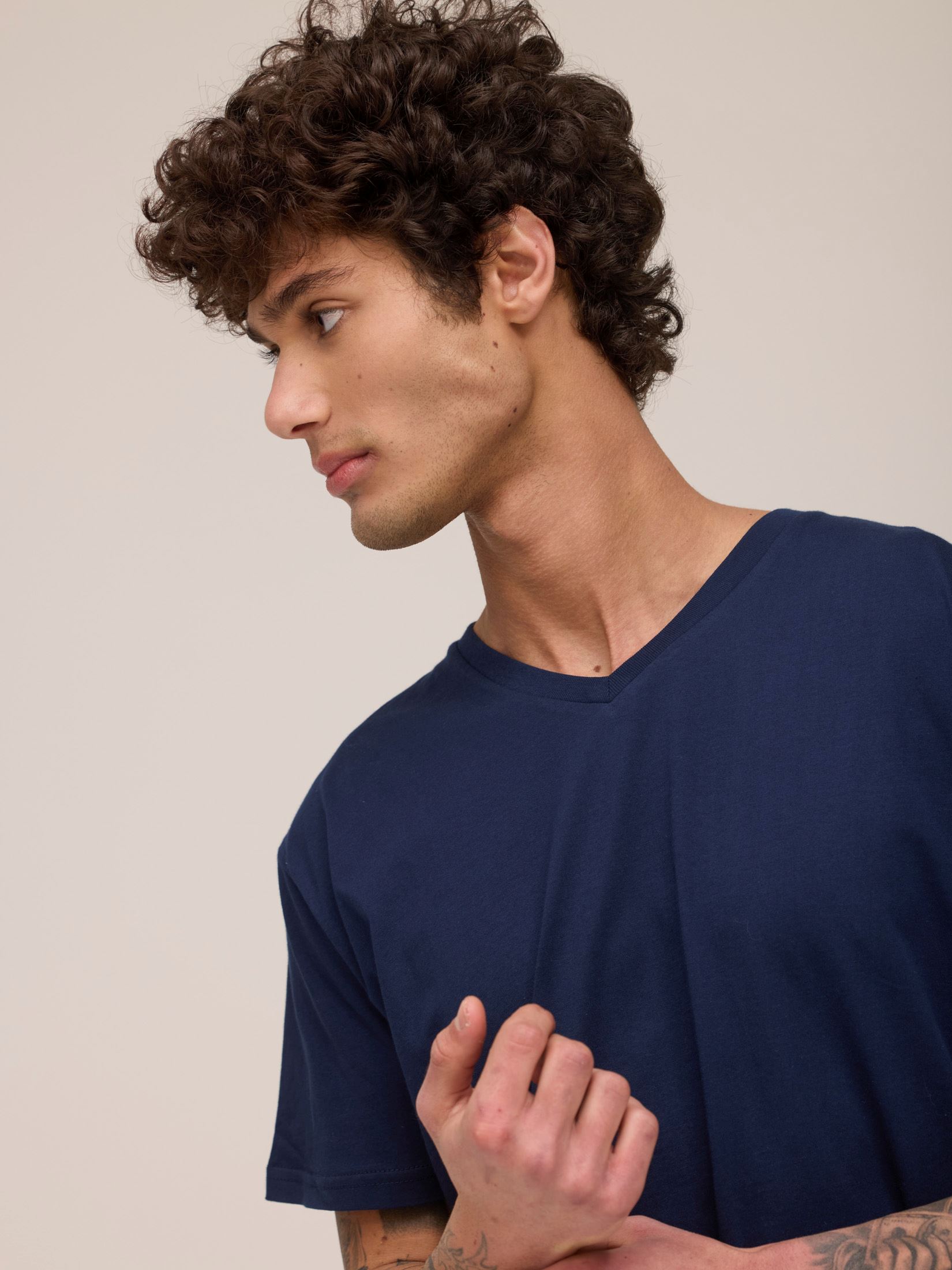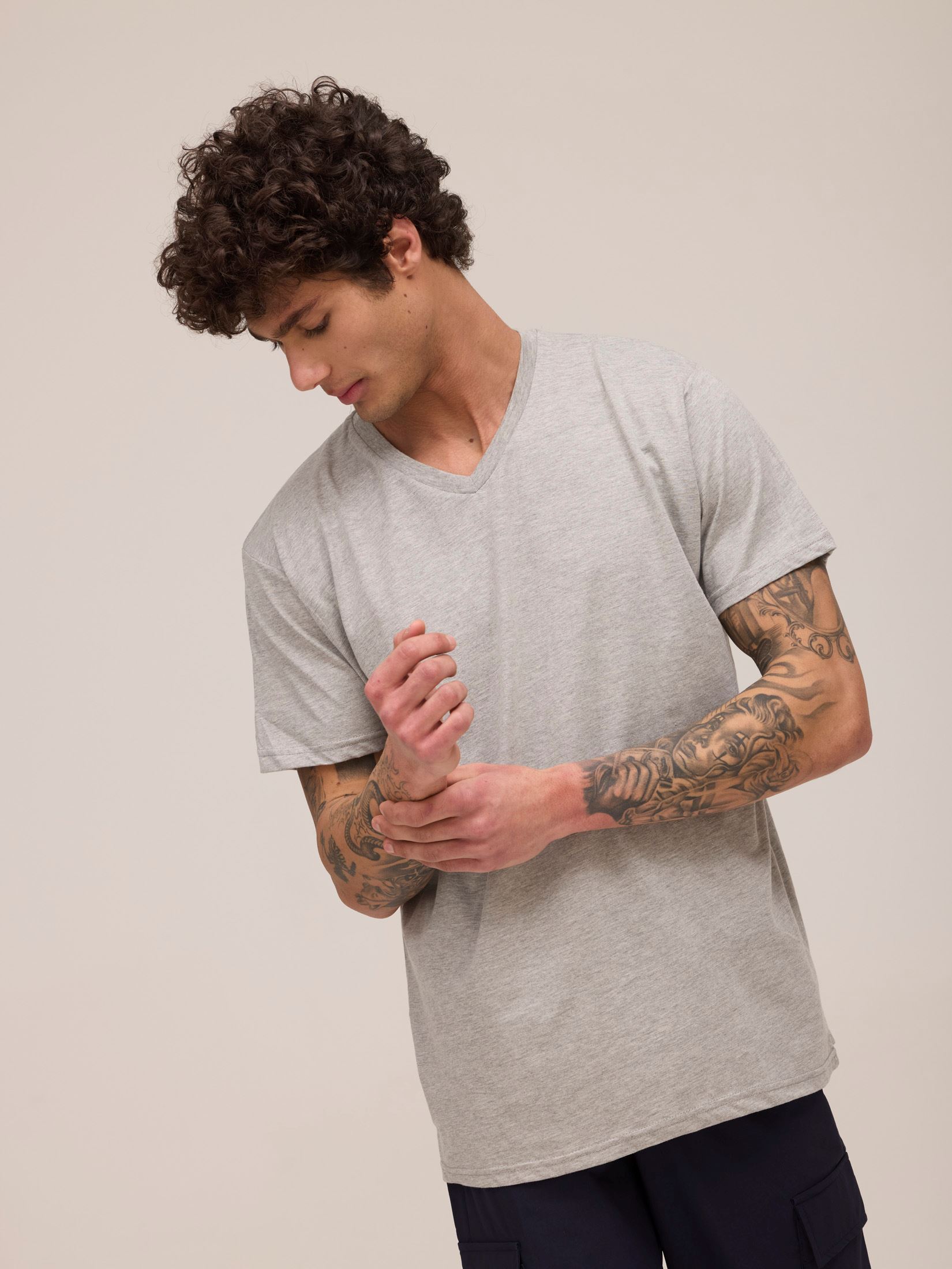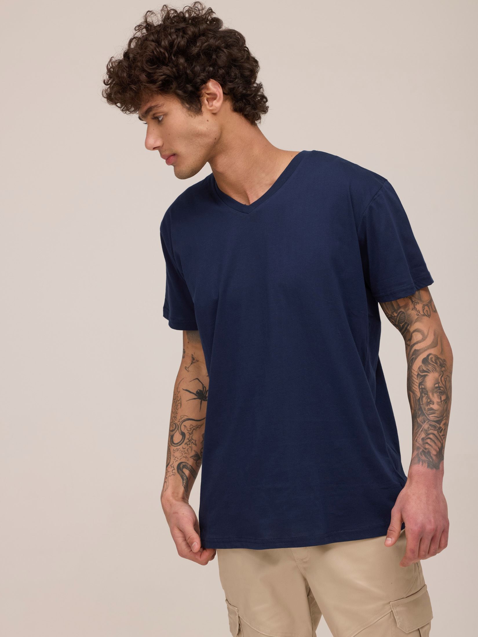 חולצת טריקו גבר צווארון V שרוול קצר