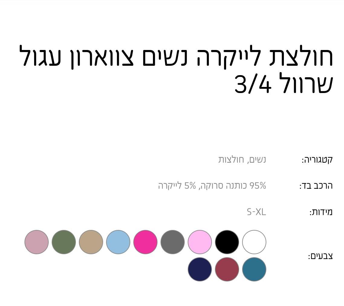 מחיר מינימום לכל הוספת מיתוג ל חולצת לייקרה נשים צווארון עגול שרוול 3/4 היא: 550 ₪