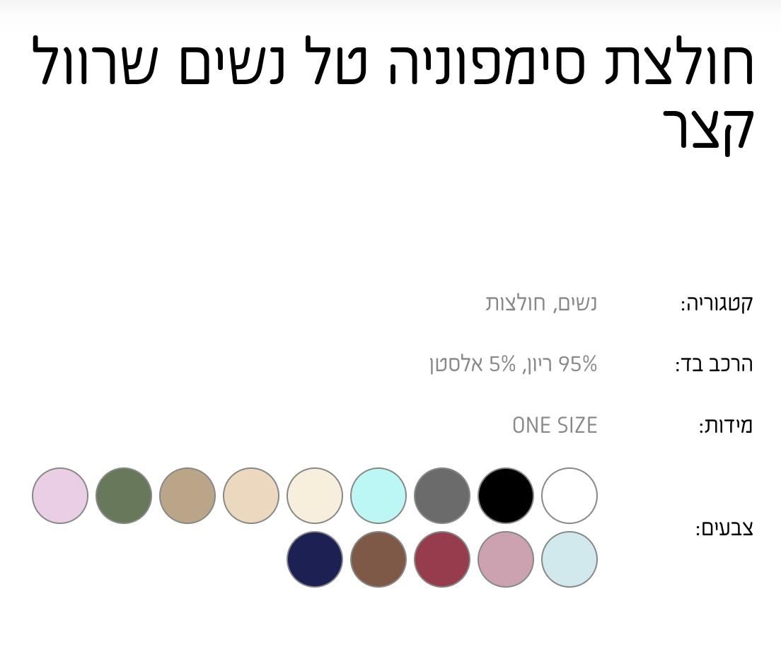 מחיר מינימום לכל הוספת מיתוג ל חולצת סימפוניה טל נשים שרוול קצר ONE SIZE היא: 550 ₪