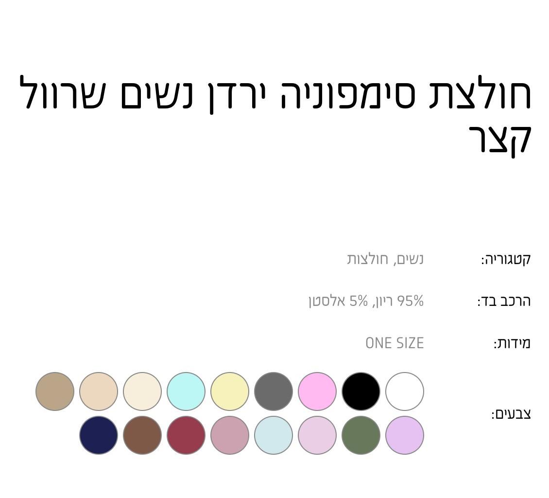 חולצת סימפוניה ירדן נשים שרוול קצר ONE SIZE