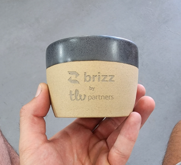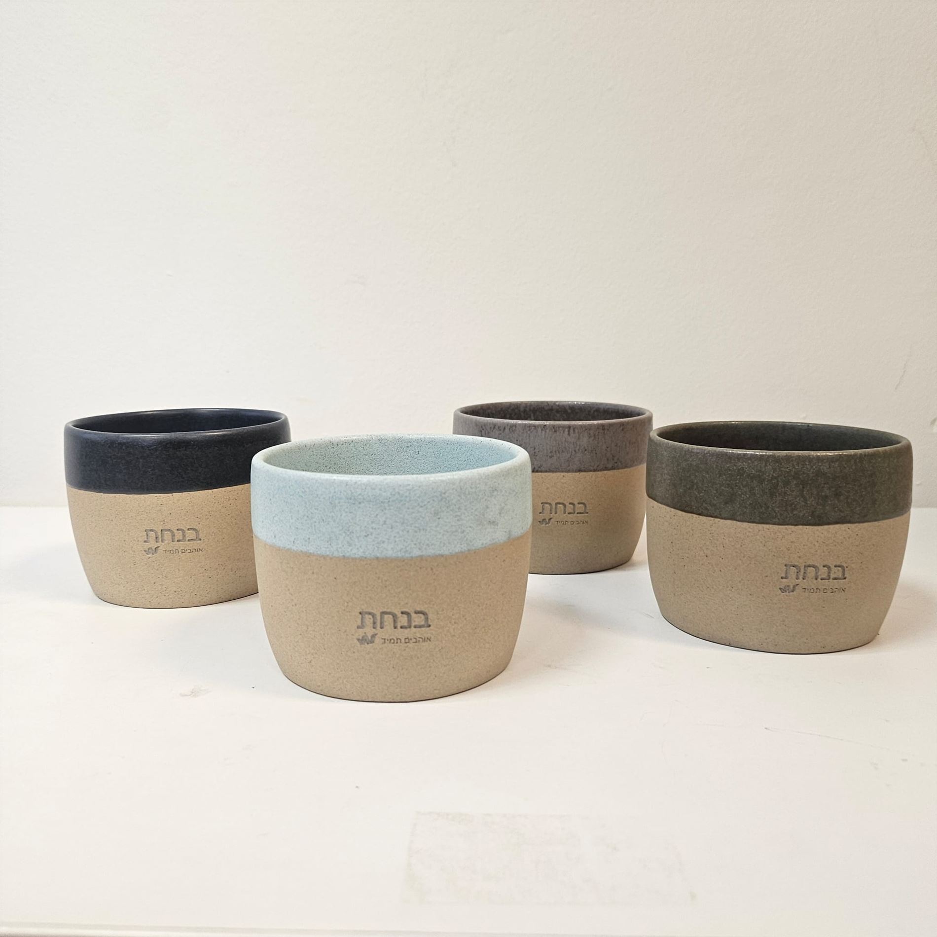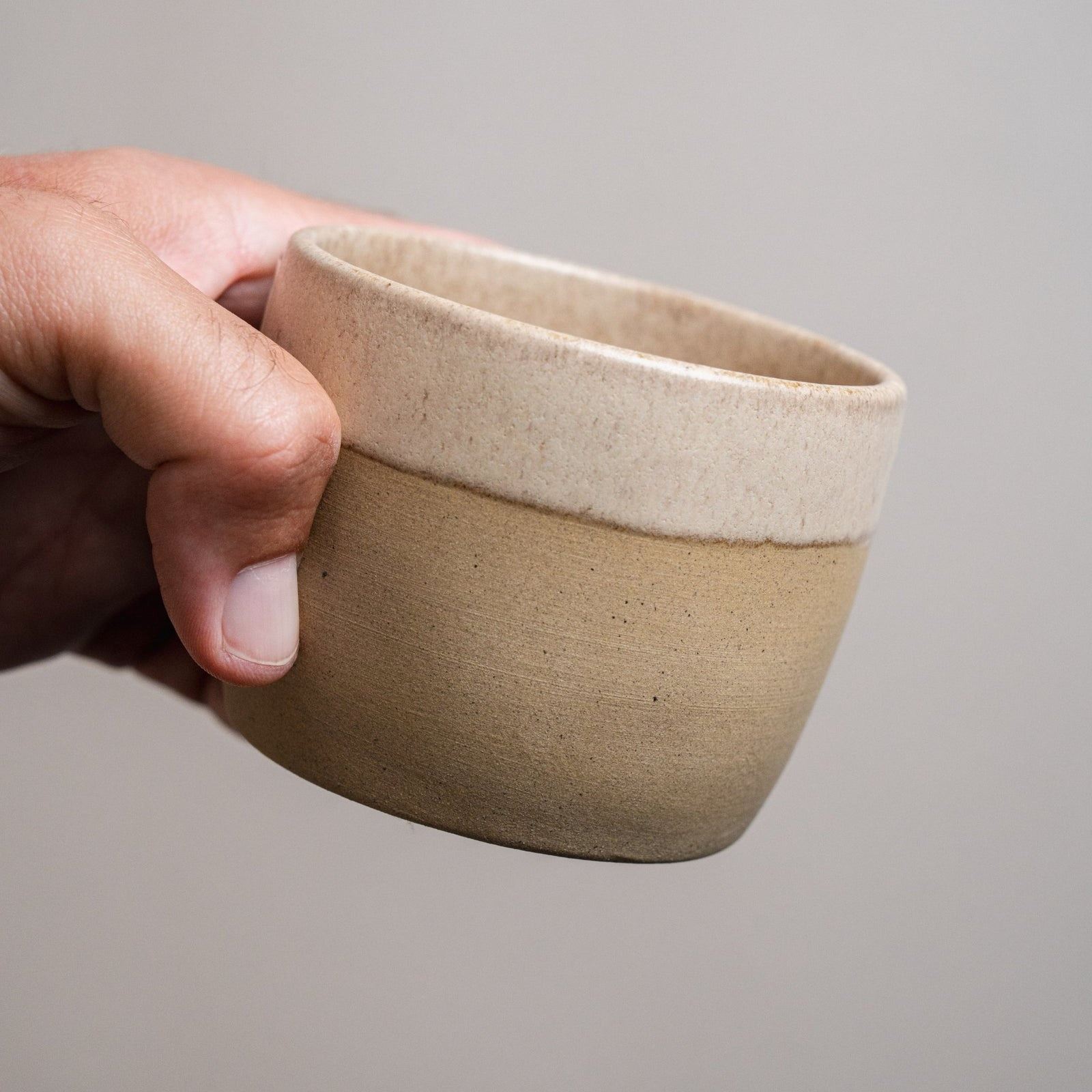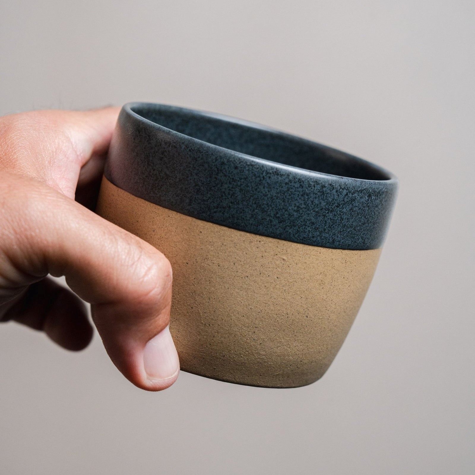 הכוסות עשויות מקרמיקה ממוחזרת, ידידותיות לסביבה ובעלות טקסטורה מחוספסת וצביעה מינימליסטית המוסיפה למראה האסתטי שלהן. הקרמיקה מהסוג Stoneware הידועה בעמידותה