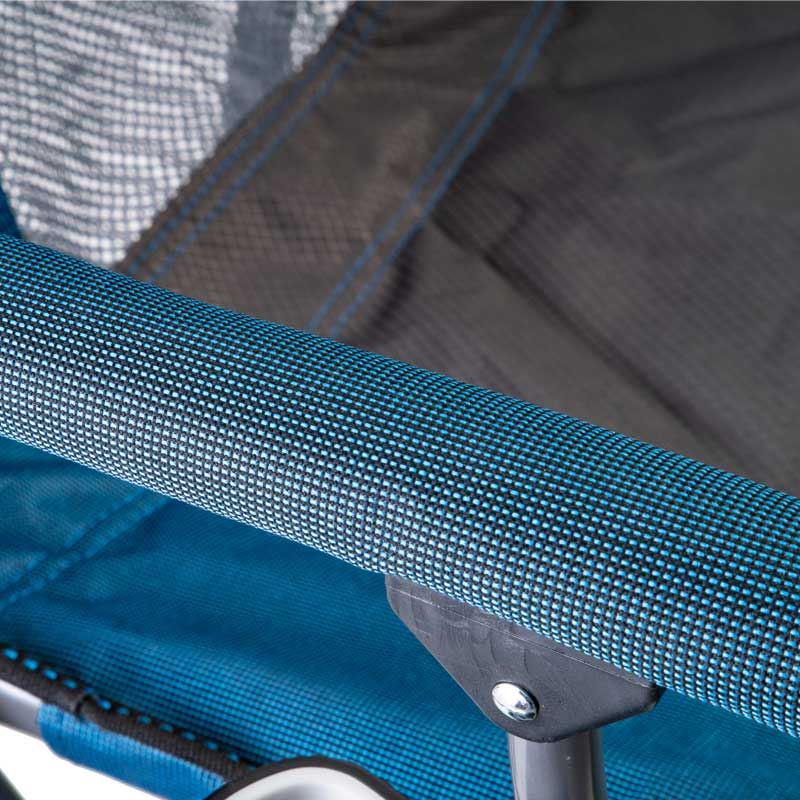 כמו כל סדרת כסאות הקמפינג שלנו הפתיחה והסגירה שלו קלה תפעול. בד הרשת האיכותי אשר נמצא במשענת ישמור עליכם יבשים ורעננים גם בימים חמים.