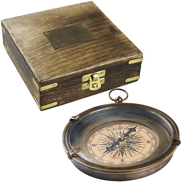 מחיר מינימום לכל הוספת מיתוג ל מצפן גדול מהודר בסיס נחושת בקופסאת עץ היא: 550 ₪
