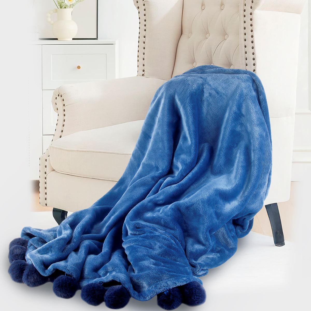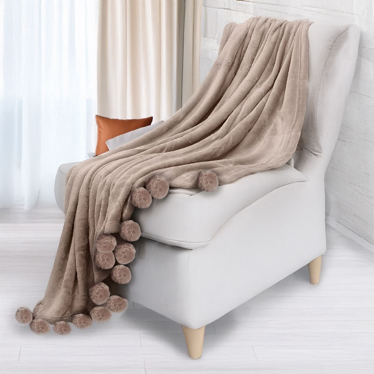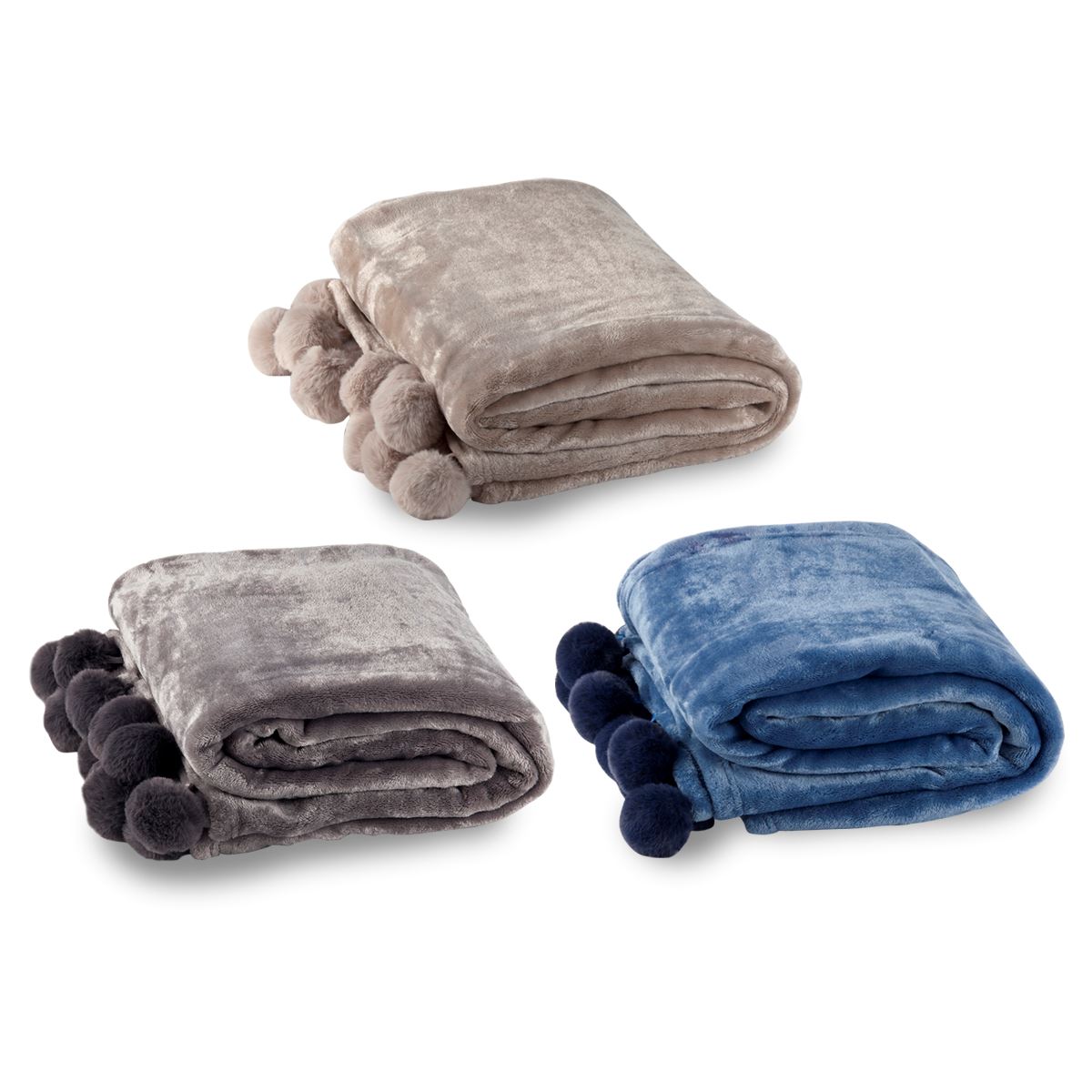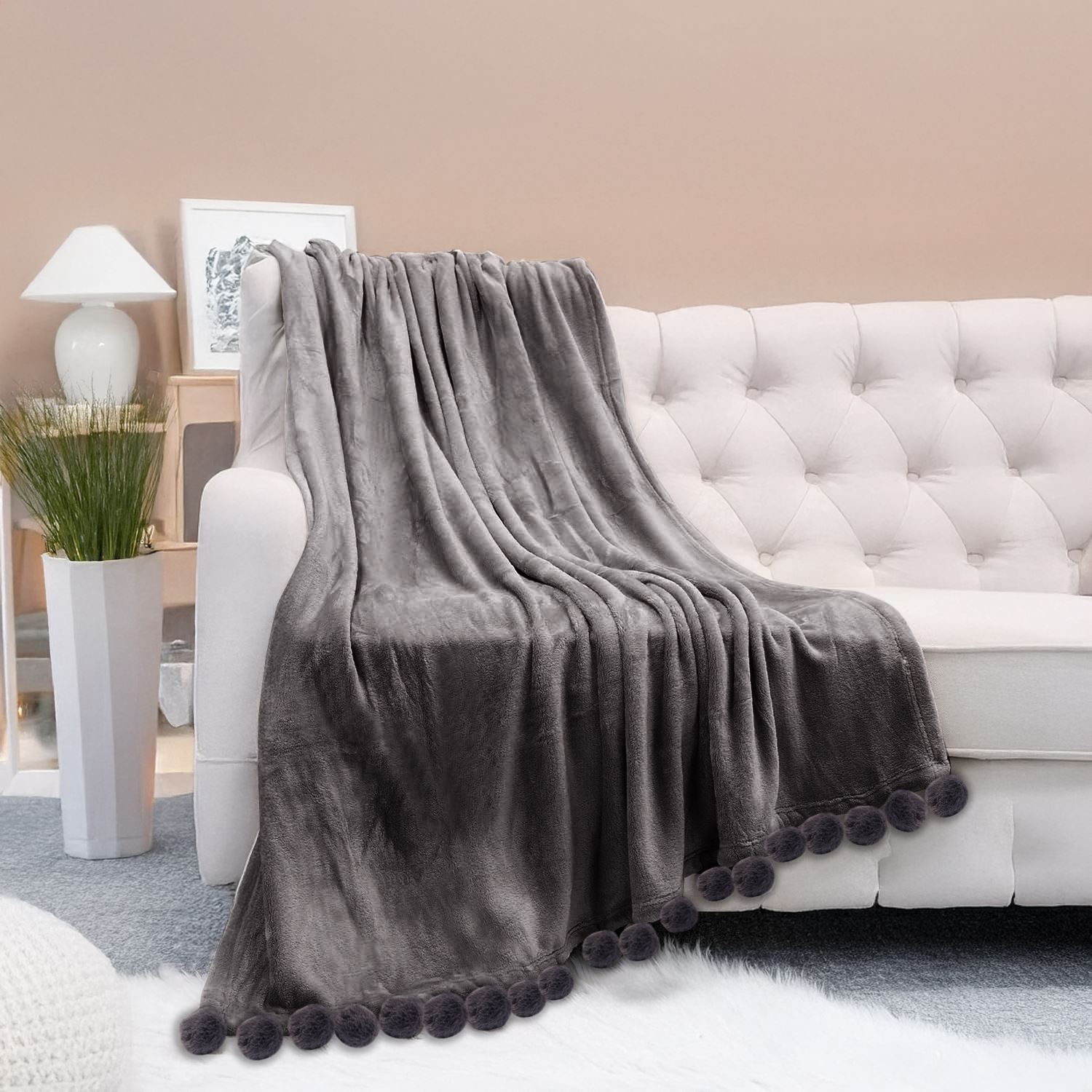 שמיכת קורל פליז עם פומפונים,