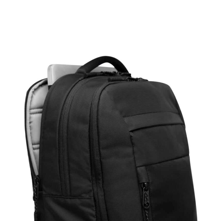תיק גב בנפח 20 ליטר וברמת ארגון גבוהה במיוחד. עשוי מניילון ממוחזר דוחה מים לעמידות בגשם קל, בשילוב בסיס אטום למים המגן מפני חדירת מים. התרמיל מציע שילוב מדויק בין פונקציונליות מתקדמת לנוחות נשיאה, עם רצועות גב מרופדות, ידיות אחיזה, לולאות ייעודיות לחיבור על טרולי ופאנל גב מאוורר מסוג Airmesh לנשיאה ממושכת ונעימה. כולל תא מרופד למחשב נייד (מסך עד 17 אינץ’), עם גישה פנימית או חיצונית, ומערכת ארגון פנימית חכמה לאחסון בטוח ונגיש של אביזרים חיוניים. רצועות כיווץ מאפשרות הידוק והתאמת נפח ליצירת מראה נקי ומסודר למי שמנהל יום עבודה אינטנסיבי במשרד, בבית או בדרכים בכל חלק של היום.