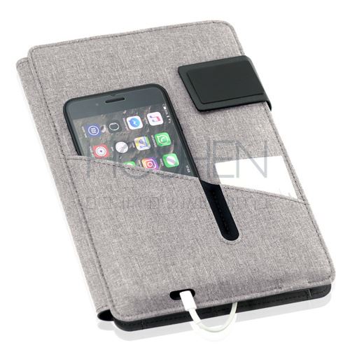 מכתביית A5 מאריג איכותי עם מטען נייד 4000mAn מובנה! דפי שורה ומעמד לסמארטפון/טאבלט מתאים למגוון מכשירים! ניתן לעשות חריטה על לוחית המתכת המגנטית או הדפסה על המכתבייה עצמה. ניתן גם לחרוט שמית, כל מכתבייה עם שם אחר. מכתביות קומפליט complete 1647
